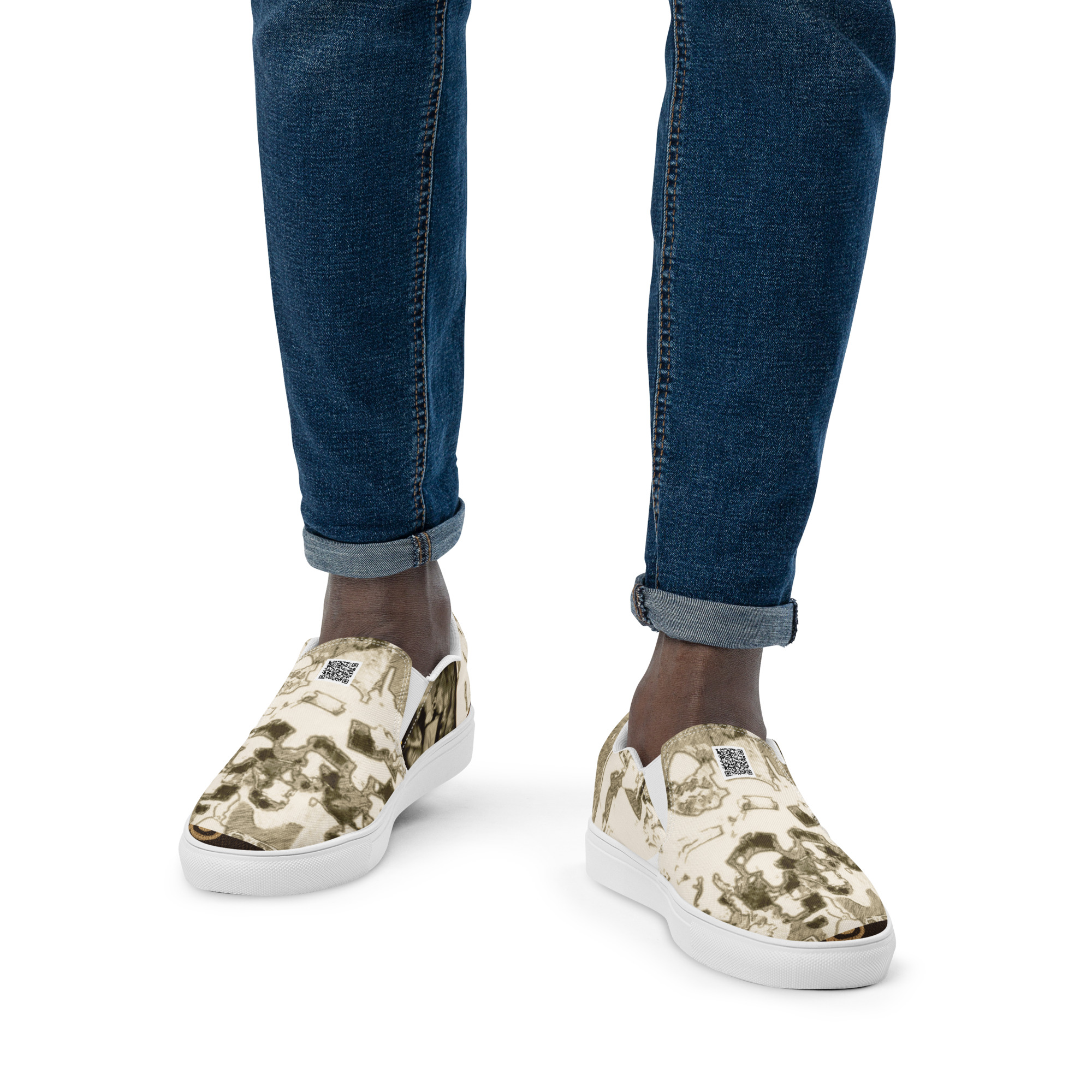 Made for comfort and ease, these Men’s Slip-On Canvas Shoes are stylish and the ideal piece for completing an outfit. Equipped with removable soft insoles and rubber outsoles, it’s also easy to adjust them for a better fit. With the QR Code Sancta Familia composed by Alicia Domínguez Arcos, it is found in the album PROPIUM MISSAE 1982.