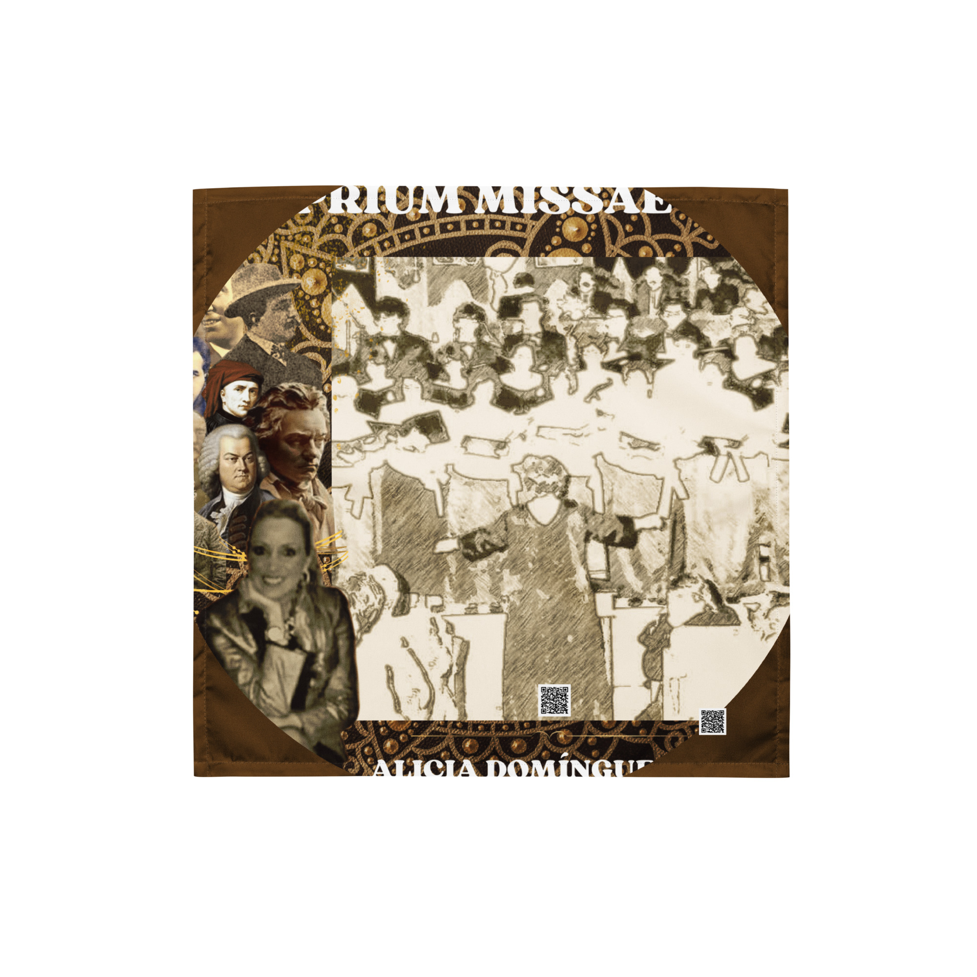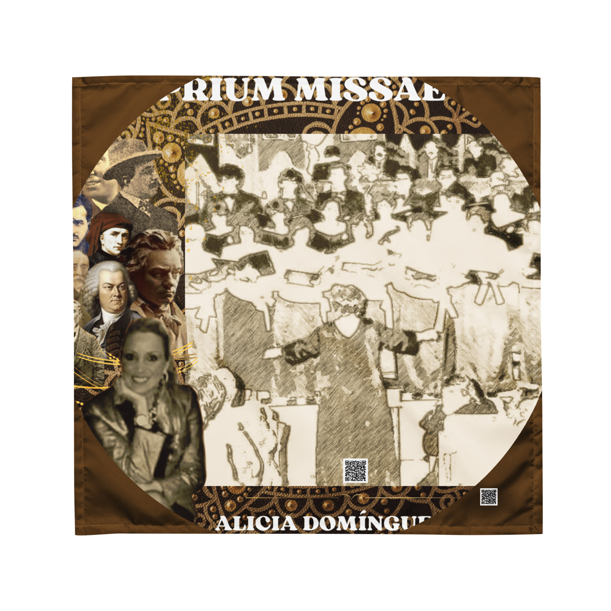 Get ready to make a statement with this all-over print bandana. Mix up your outfits by using this as a headband, necktie, or armband. In fact, why not get a second bandana to match your pet? Grab a few and hit the streets in style!. With the QR Code Sancta Familia composed by Alicia Domínguez Arcos, it is found in the album PROPIUM MISSAE 1982.